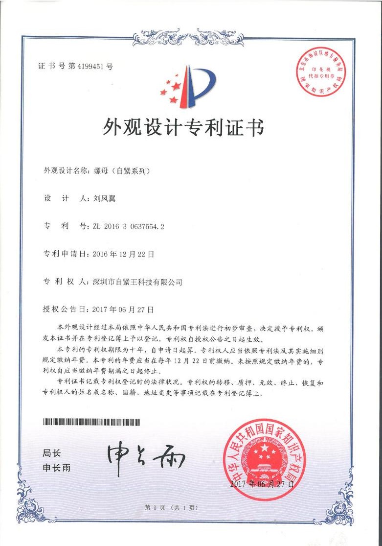 外觀設(shè)計專利(螺母,自…