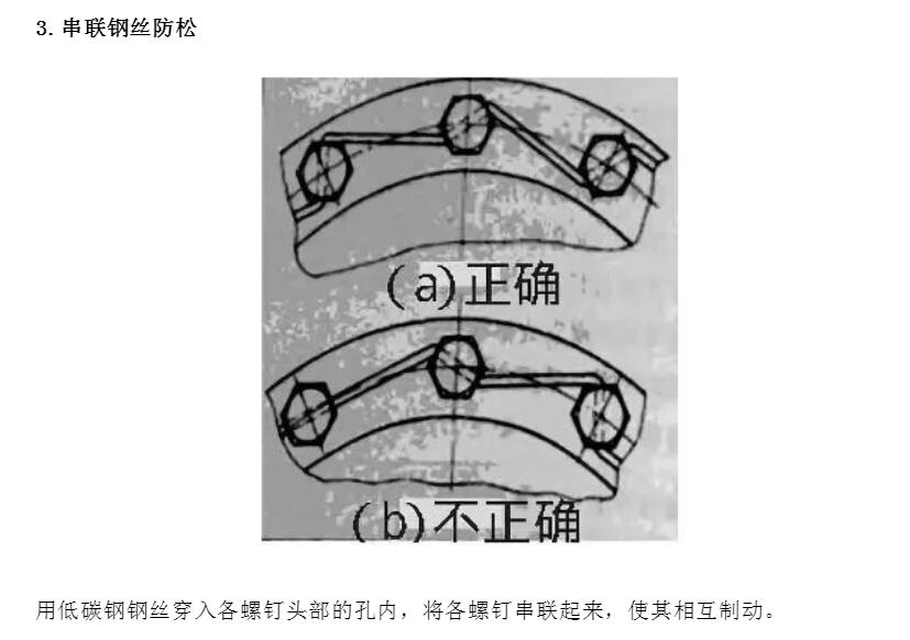 螺紋聯(lián)接 按自鎖條件設計:ψ ≤ρv,螺紋副中產生的摩擦副使螺栓自鎖從而緊固螺栓,所以靜載下連接不會自行松脫。但是在沖擊、振動、變載荷下、溫度變化較大時 螺旋副摩擦力F會減小或瞬時消失。這種現(xiàn)象若反復出現(xiàn),連接螺栓就會逐漸松動。螺紋緊固件松動后,產生的動能mv2,受軸向力作用的緊固件,螺紋被破壞,螺栓被拉斷。受徑向力作用的緊固件,螺栓被剪斷,螺栓孔被打壞 。