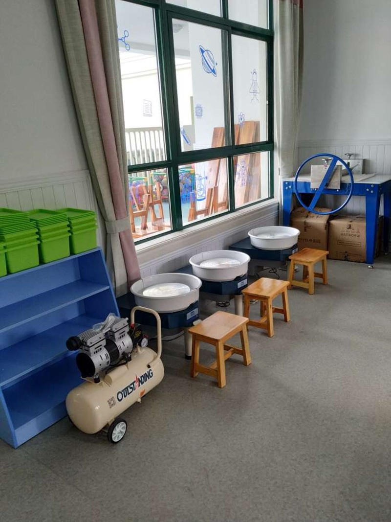 為此,該園今年暑期增設(shè)了陶藝教室,訂制了百陶會(huì)系列陶藝設(shè)備、設(shè)施,分齡段向孩子開(kāi)放,如3-4歲開(kāi)設(shè)捏雕課,5-6歲開(kāi)設(shè)拉坯課,并陸續(xù)開(kāi)展陶藝主題課程,為孩子營(yíng)造一個(gè)舒適的、快樂(lè)的學(xué)習(xí)空間。
