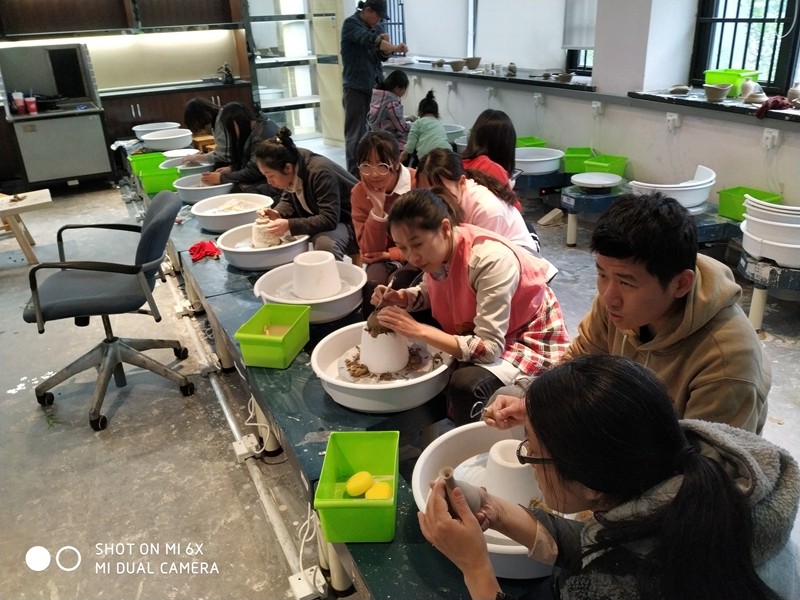 陶藝教室(造型工坊)設立于創(chuàng)意設計學院,該院現(xiàn)有專業(yè)教師30余人,其中教授2人,副教授10人,省級工藝大師1人,并與義烏創(chuàng)意園合署辦公。目前已有65家企業(yè)入駐創(chuàng)意園,其中師生同創(chuàng)工作室及公司15家,擁有“國家旅游商品研發(fā)中心”等國字號研發(fā)中心。