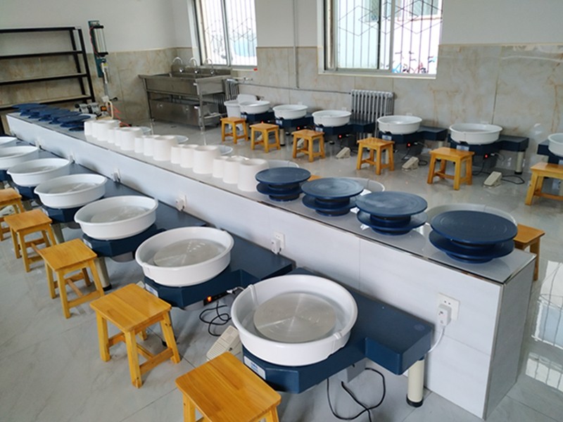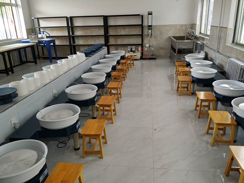 陶藝實(shí)訓(xùn)中心面積約80平方米,合理布設(shè)了百陶會(huì)電窯、電熱鼓風(fēng)箱、泥板機(jī)、拉坯機(jī)、泥條機(jī)、練泥機(jī)、施釉臺(tái)等設(shè)備設(shè)施,可供30人同時(shí)上課,預(yù)計(jì)近期可全面開(kāi)放、投入使用。